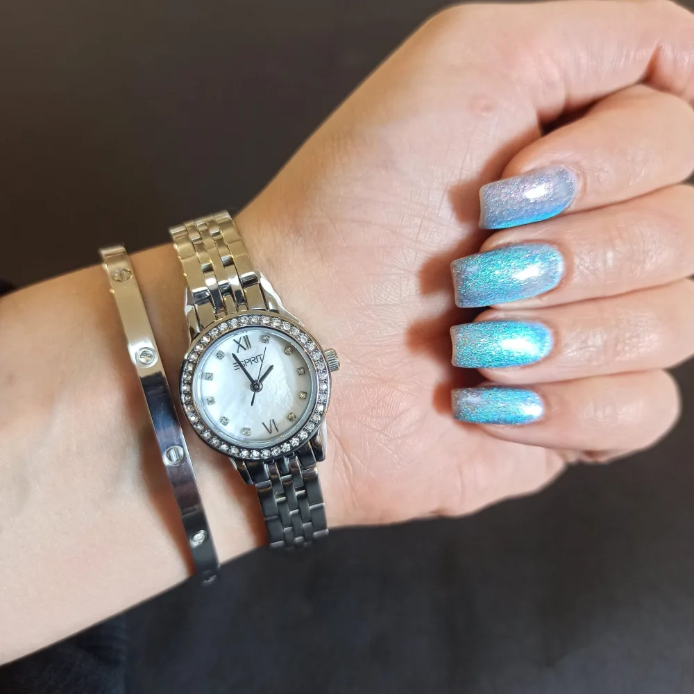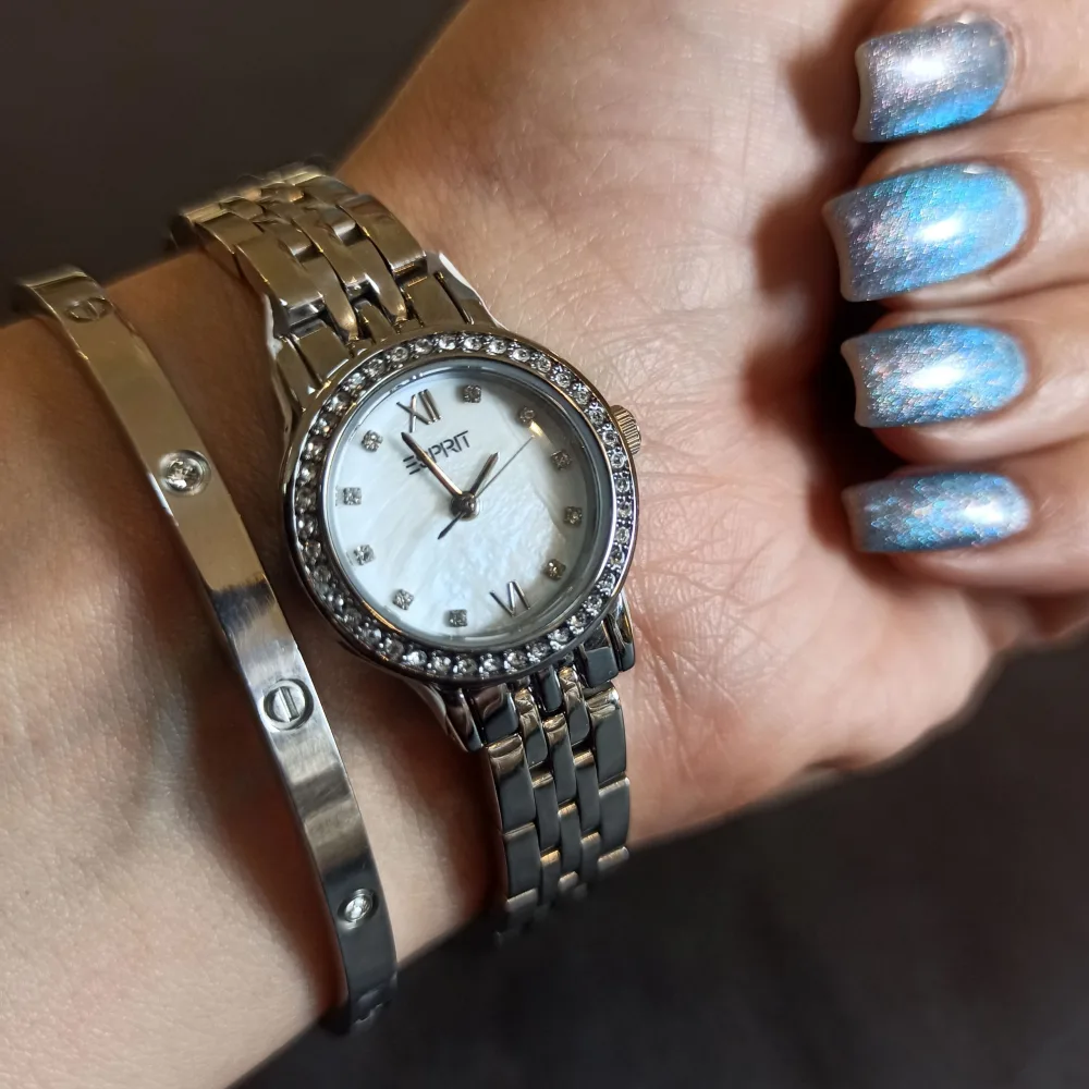 طراحی سه‌بعدی سگمنت ساعت به همراه قطر صفحه 33 میلی‌متری، جلوه‌ای ظریف و مدرن به این محصول می‌بخشد. رنگ‌بندی نقره‌ای و طلایی در بند و قاب، به همراه صفحه سفید، ترکیبی جذاب و هماهنگ ایجاد کرده است که با هر استایلی سازگار است. همچنین، قفل پروانه‌ای ساعت، استفاده آسان و ایمن را تضمین می‌کند.