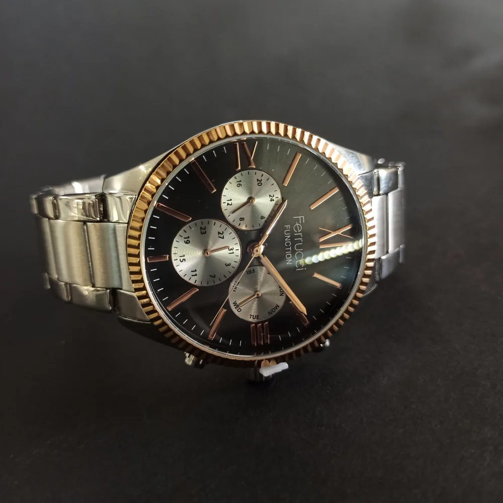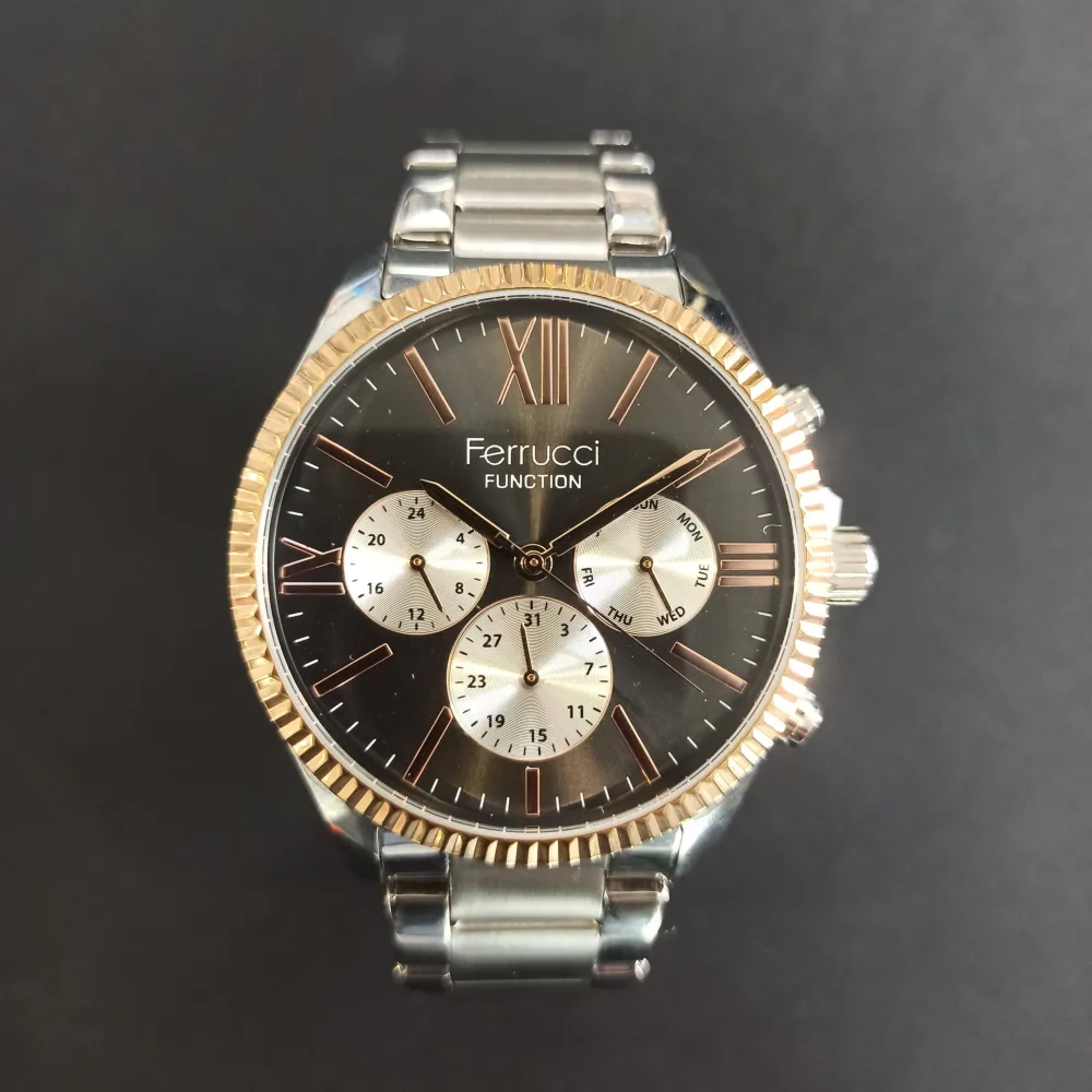 ساعت مچی مردانه اورجینال فروچی کد 21 یکی از محصولات جذاب و باکیفیت برند ایتالیایی Ferrucci است که با طراحی مدرن و ویژگی‌های کاربردی، انتخابی عالی برای آقایان خوش‌سلیقه محسوب می‌شود. این ساعت با اصالت برند، کیفیت ساخت بالا و گارانتی معتبر عرضه می‌شود و می‌توانید جزئیات بیشتر را در دیاقو اپتیک مشاهده کنید.