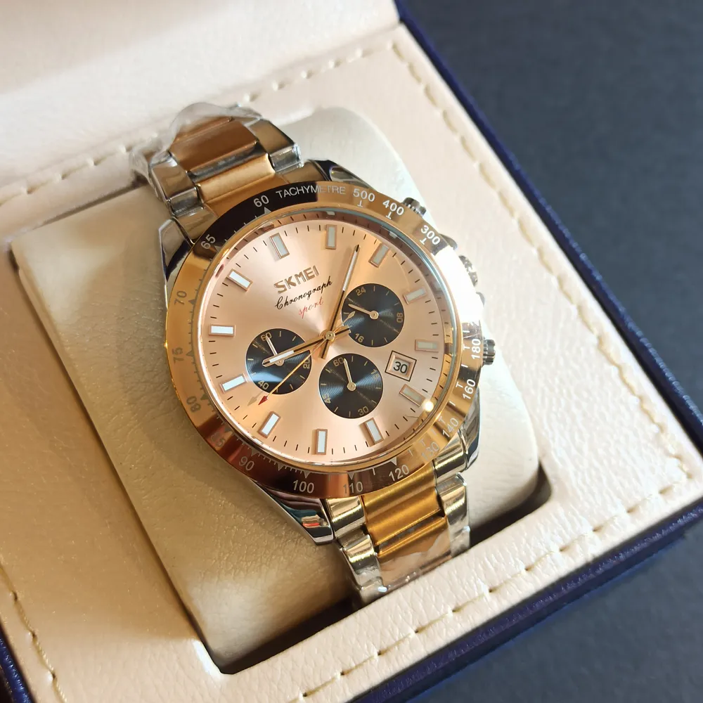 ساعت اسکمی کد 1021 با استفاده از مواد اولیه مرغوب و استانداردهای جهانی ساخته شده است. بدنه این ساعت از جنس استیل ضد زنگ بوده که مقاومت بالایی در برابر خط و خش دارد. همچنین، صفحه نمایش آن با طراحی سه موتوره، جلوهای مدرن و حرفهای به ظاهر ساعت بخشیده است.